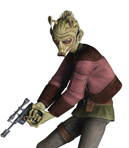 Dabing postavy: žádnýJakoli byl nájemný lovec, Rodian, který měl výjimečně chladnou pověst za to, že nikdy nepřivedl svou kořist živou. Mimo jiné se účastnil závodu v Dookuově Schránce.